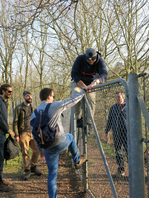 We walk through the school grounds, eerily silent on a Saturday morning, five of us breathing in the heady nostalgia, the other nine hoping they won’t land on the sex offenders register, until we reach our first obstacle, a locked gate, that prevents us entering Wildmoor Heath, our intended route. (Rob later referred to this incident as gate-gate.)