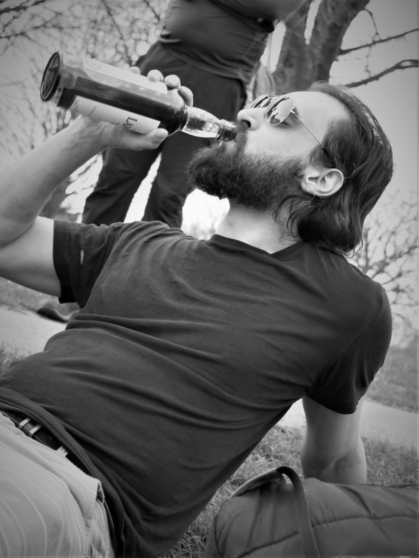 - (Off camera) Like an escapee from the gulag, Clyde drinks cold lentil soup from a can because he needs to balance his diet out somehow and it’s hard for him otherwise. Not even the dog wanted to touch that.