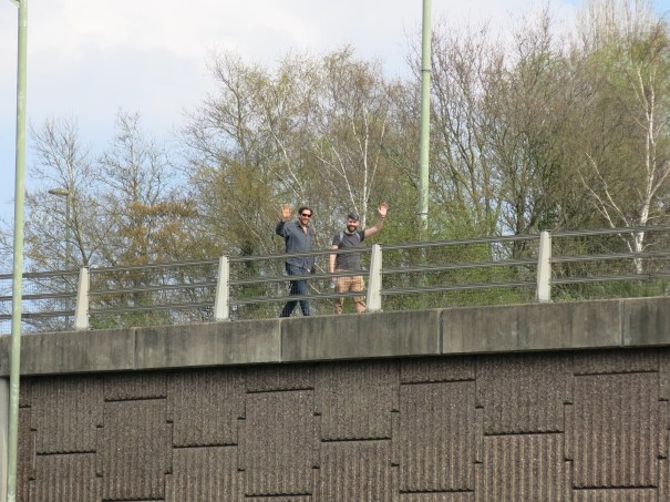 Fuelled by carbohydrates and dead meat, Pete and John take off at a thunderous pace, managing to get so far ahead that they climb the stairs away from the main road and cross the bridge before the rest of us have even reached the stairs.