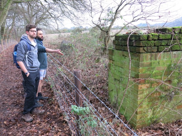 We follow the hill through the woods and John tries his best to point out interesting historical sights where they appear: