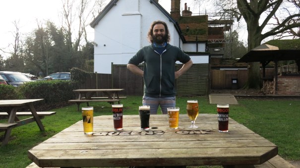 Salvation from this nonsense – and loads of mud- is at hand as we reach our second pub stop, The White Lion in Yateley. It’s a very nice pub but given that by this point we’re a bunch of sweaty messes, rather than savour the ambience (and make the clientele savour our ambience) we decide to sit outside.