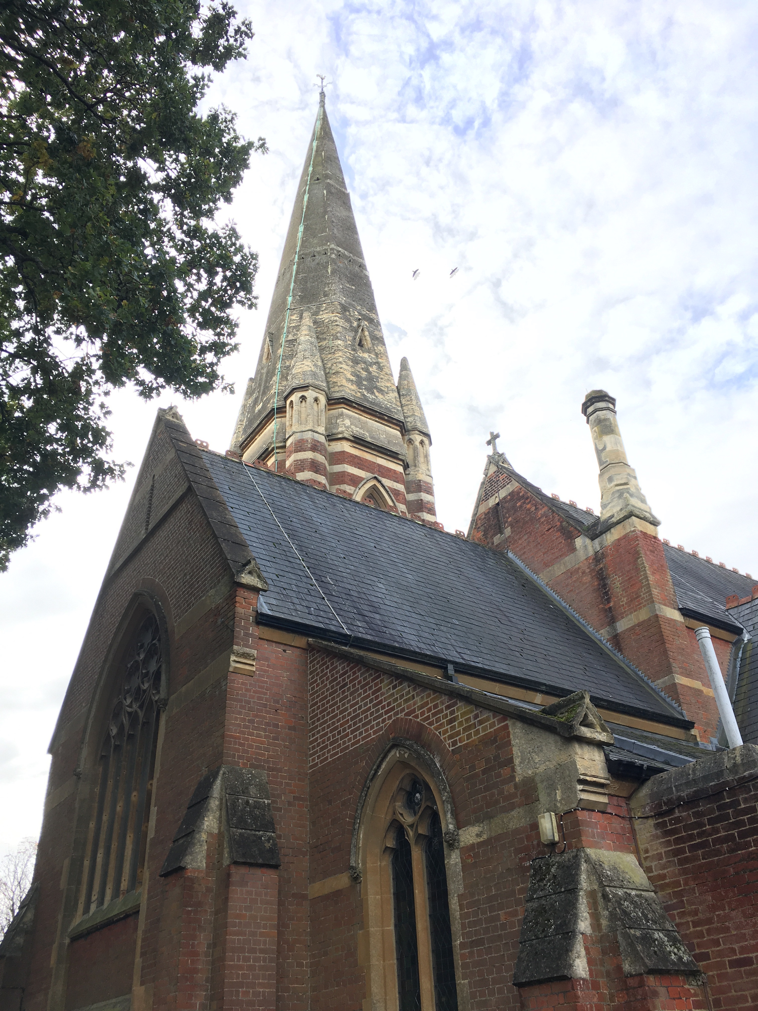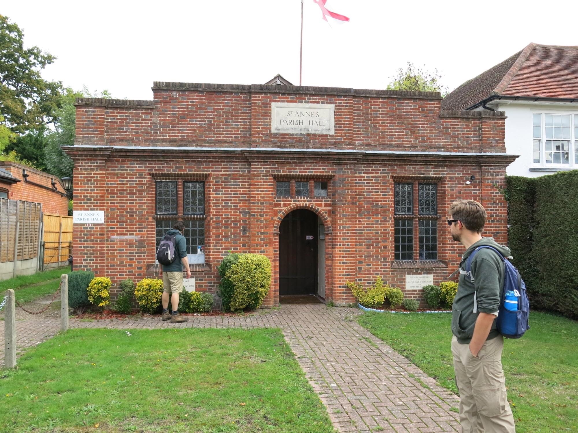 It’s not too long after this that we emerge from the woods into the outskirts of Bagshot, and we find ourselves at St Anne’s church. This is a good thing because churches are a massive staple on hikes alongside graveyards, random cows and blisters.