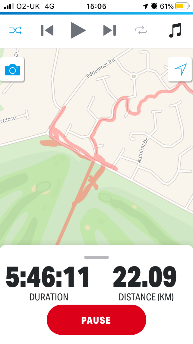 Roughly ten minutes later (probably less) I get a call from Rob to say that they’d learnt that Alan was indeed right: Beau had gone home. I return to the others, the dog and owners long gone, with nothing to show for my experience other than some crazy strawberry bootlace-style patterns on my walking app.